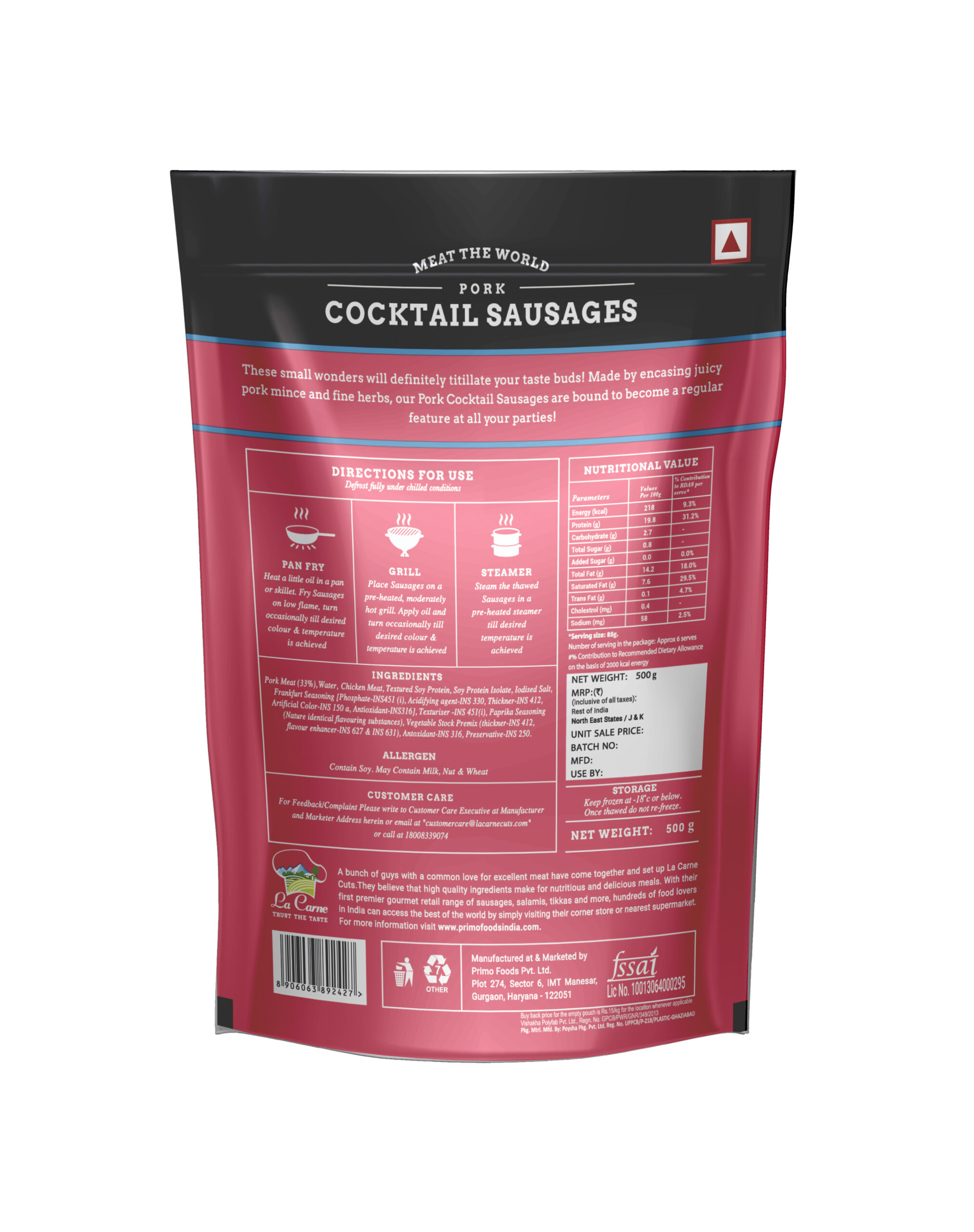 Related products FROZENSAUSAGESChicken Cocktail Sausage(250 Gm) Read more FROZENSAUSAGESPork Nuremburg Sausage (500 gm) Read more FROZENSAUSAGESPork Chorizo Sausage (250 gm) Read more